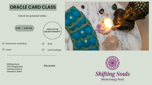 Learn the fascinating world of oracle cards and discover how to incorporate them into your everyday routine for inspiration and guidance. This class offers an in-depth exploration of these mystical tools and equips you with practical knowledge on how to harness their power effectively. Join us and unlock the potential of oracle cards in enhancing your daily life. $45 per person and includes a deck of cards to take home. @shiftingsouls 7575 Kingspointe Parkway Suite 21 Book Here
